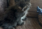 A fluffy 2 month male kitten is looking for his new home. He is black with a white spot on his chest. He is very playful and loves cuddles. He is treated for parasites and fleas. Needs vaccination. Will be given only for inside the house and with the term of getting castrated when his age allows it. I might request home check or reference from a vet that you a responsible pet parent.